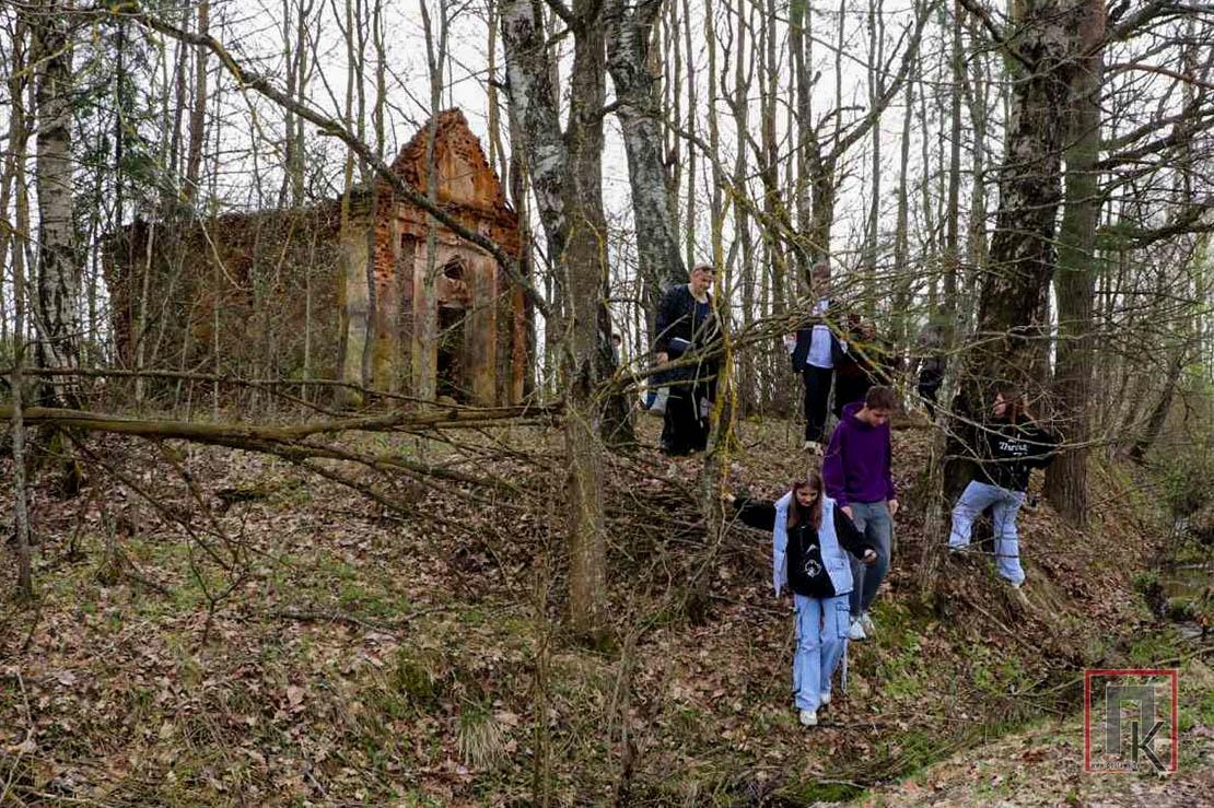 По дороге к следующему пункту — д. Огородники, где родился Владимир Дубовка, участники мероприятия остановились возле малоизвестной полуразрушенной часовни-усыпальницы. Когда-то она была построена двумя помещиками в благодарность Богу. Здесь хранится история не только о большой любви, но и о трагических событиях, произошедших с семьёй Хомских. Ни одного из участников краеведческого маршрута она не оставила равнодушным.