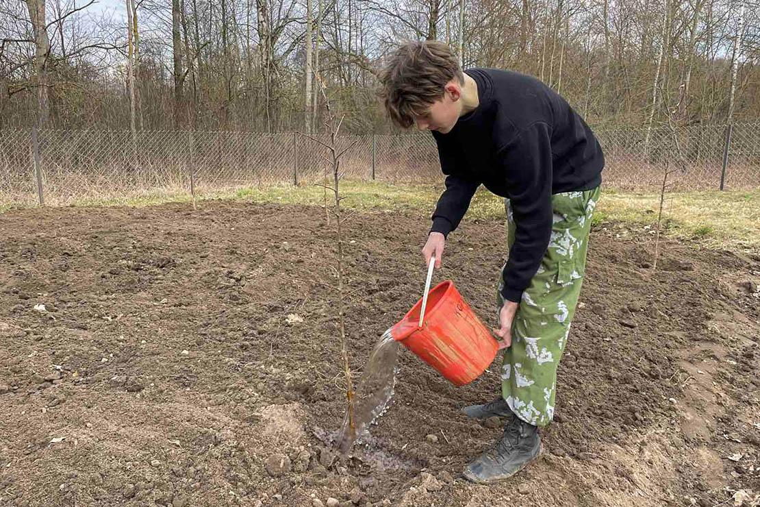 Участники закладки сада — активисты школы: 11-классники Алеся Побединская, Виктория Щуцкая, Виктория Чапскас, 10-классник Александр Дорошкевич (волонтёр) и 9-классник Антон Журов. Вместе с заместителем директора по воспитательной работе Дарьей Костень ребята во время весенних каникул ответственно выполнили данное им поручение. Каждый из участников акции испытал не только радость от общения на свежем воздухе в неформальной обстановке, но и невероятное чувство гордости за то, что стал маленькой частичкой большого благородного дела. Учащиеся пообещали ухаживать за молодыми деревьями, чтобы они хорошенько прижились. А вот снимать первый урожай уже будут те, кому сад достанется в наследство.