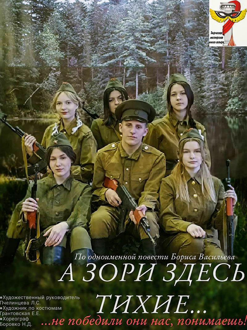 — Главные роли в нём исполняют ученицы 11 класса. Они младше героинь повести всего на год-два. Мои артистки очень прониклись судьбами тех девчат, хорошо понимают их, готовых отдать жизнь за Родину. Это очень глубокий, если можно так сказать, прочувствованный спектакль, он достаёт из наших душ всё лучшее, что там есть. Я всякий раз не могу сдержать слёз. Когда постановка заканчивается, смотрю на аудиторию и говорю: «Спасибо вам за слёзы». Если есть слёзы — значит, дошло, спектакль получился и мы достучались пусть не до всех, но до большей части зрителей.