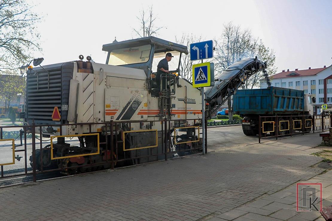 Новое дорожное покрытие на площади украсит наш город к 615-летию и к фестивалю «Звіняць цымбалы і гармонік».