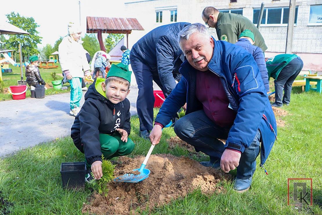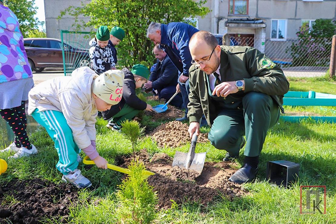 Около 30 туй высадили работники Поставского лесхоза с ребятами дошкольного лесничества Мурашки. Помогали им в этом Витебского областного и Поставского районного Советов депутатов Сергей Латецкий, воспитатели и руководство учреждения.