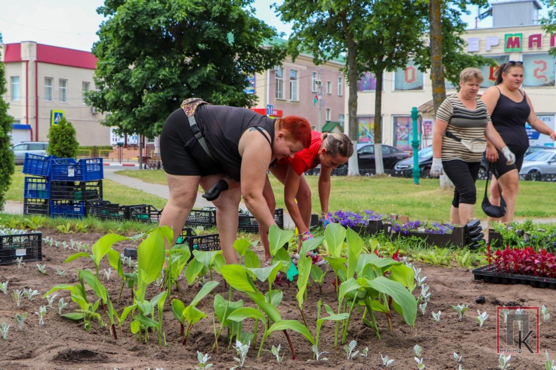 Цветоводы ЖКХ уже несколько дней высаживают на центральной площади яркие цветы, чтобы поставчан и гостей города долго радовали красотой многочисленные разноцветные клумбы.