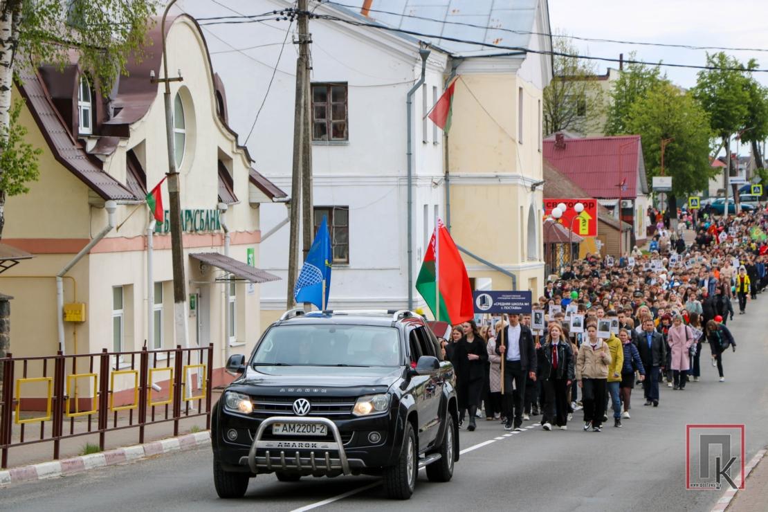 Ярко и атмосферно отметили Поставы День Победы. Праздничная аура витала в городе с самого утра. Компаниями и в составе колонн люди бесконечным потоком стекались к эпицентру торжеств — на центральную площадь. Море символики, флагов, цветов и шаров. Казалось, вышел весь город воспеть героический подвиг тех, кто в горниле войны ковал Победу, сказать, пусть и мысленно, «спасибо» дедам и прадедам за право быть хозяевами на своей земле. По-другому нам не велят ни ум, ни сердце: страшная трагедия затронула каждую семью, безвременно забрав жизнь каждого третьего белоруса.