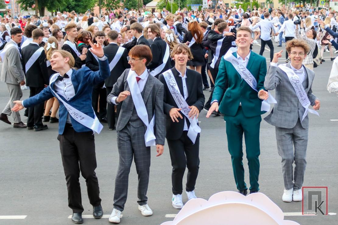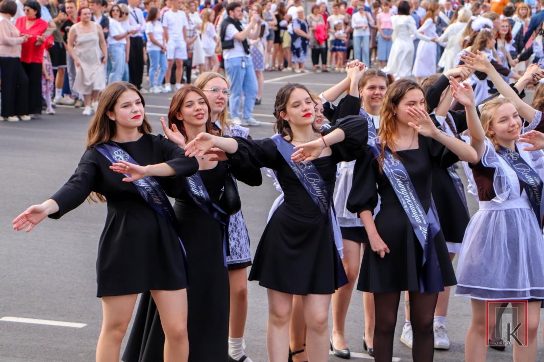 Як і раніцай у школах, на плошчы ўсхваляваныя і радасныя юнакі і дзяўчаты адпусцілі ў блакітнае неба сотні рознакаляровых паветраных шароў, яшчэ раз закружыліся ў развітальным школьным вальсе і пачулі апошні званок, які паклікаў іх у новае, дарослае, жыццё.