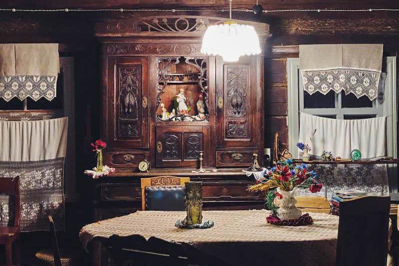 Сегодня на территории усадьбы располагается не только кузница, но и большой дом довоенной постройки длиной в 30 метров. Его мы отреставрировали, заполнили раритетными предметами быта: посудой, текстилем, мебелью. На это ушла львиная доля сил и материальных средств. Все вещи очень достойные — не новодел. Правда, местами интерьер всё же миксуется с привычными удобствами, без которых в наше время не обойтись.
