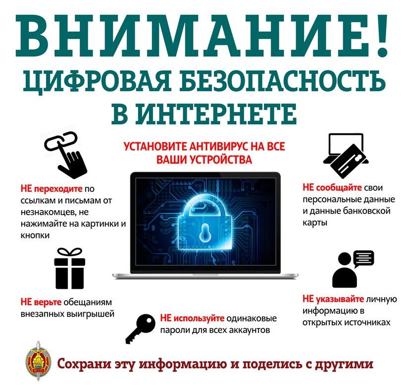 В последние годы количество киберпреступлений, совершенных на территории Республики Беларусь и нашего района продолжает стремительно расти. Жертвами преступлений данного вида становятся практически все категории граждан. Основными причинами, по которым совершаются данные преступления является излишняя доверчивость потерпевших, недостаточная грамотность наших граждан в вопросах обеспечения личной интернет-безопасности.