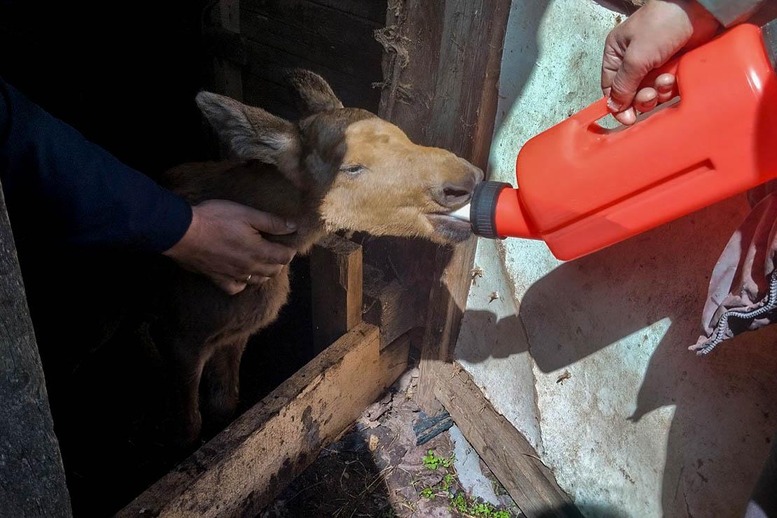 7 мая ранним утром на краю д. Пожарцы супруги Олег и Нина Хонявко нашли лосёнка. Он промок под ночным дождём и уже не мог самостоятельно передвигаться. Осмотревшись по сторонам, неравнодушные люди поняли, что его матери поблизости нет, и сразу же обратились за помощью в районную инспекцию природных ресурсов и охраны окружающей среды.