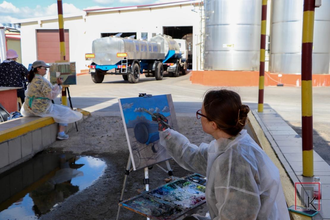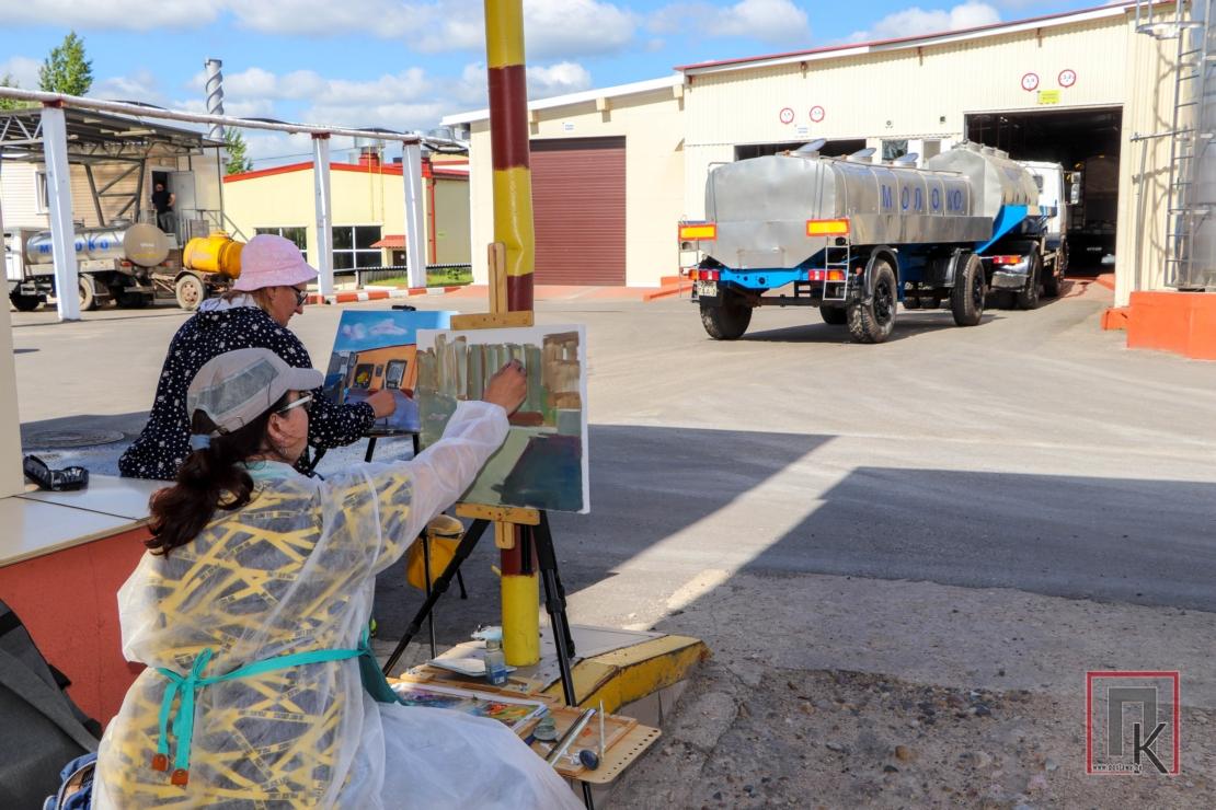 Фоторепортаж: Следующей локацией для пленэра членов АХП стали производство и территория Поставского молочного завода