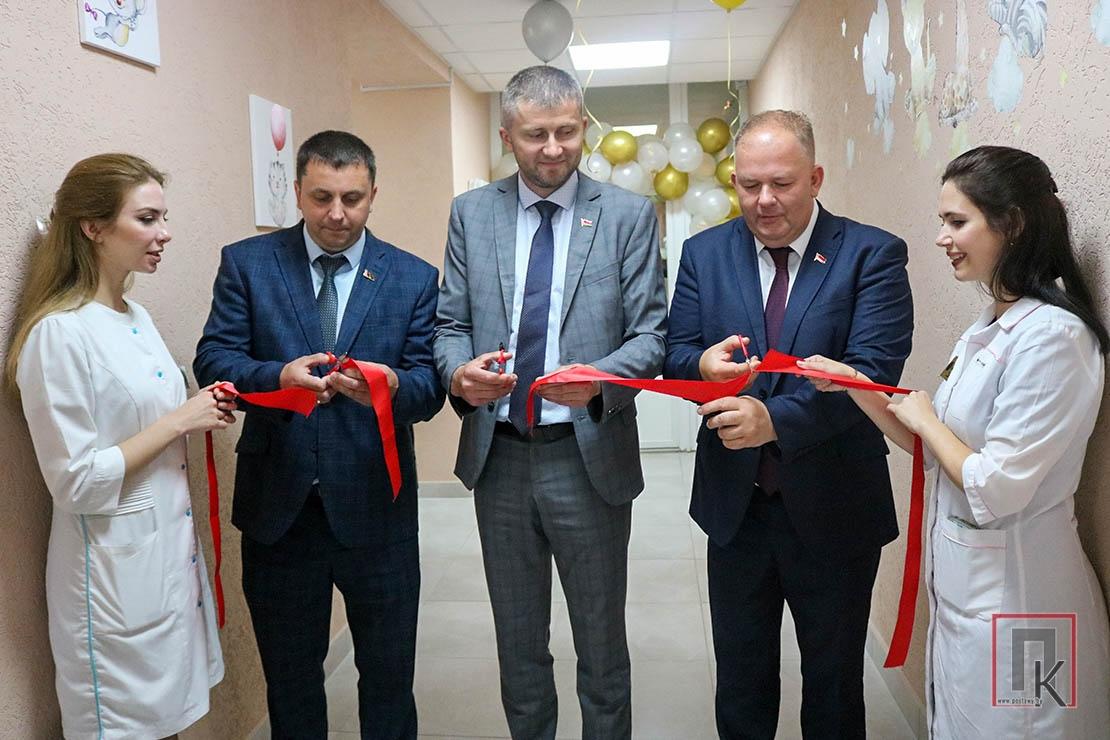 Што да рамонту памяшканняў, то яго за чатыры месяцы правялі будаўнікі КБУП «Рассвет Пастаўскі», непазнавальна змяніўшы савецкага выгляду калідор і кабінеты. Грошы на гэта выдзеліў раённы бюджэт. Вялікую спонсарскую дапамогу аказалі ААТ «Пастаўскі малочны завод» і «Навасёлкі-Лучай», якія дапамаглі набыць спецінвентар для работы з дзецьмі, аргтэхніку і іншыя неабходныя рэчы. Ацаніць, што ў выніку атрымалася, разам з Міхаілам Вішнявецкім прыбыў намеснік старшыні райвыканкама Станіслаў Чымбург. Пасля пераразання стужкі галоўны ўрач цэнтральнай райбальніцы Аляксандр Сварцэвіч правёў для іх невялікую экскурсію па цэнтры, загадчыцай якога назначана ўчастковы ўрач-педыятр Марына Урбанайць.