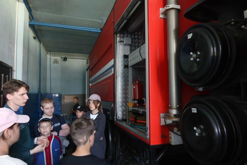 В завершение экскурсии в пожарную аварийно-спасательную часть спасатели дарят детям традиционный бонус — прохладу в жаркий день. Под брызгами воды из пожарных шлангов детвора всегда веселится от души.