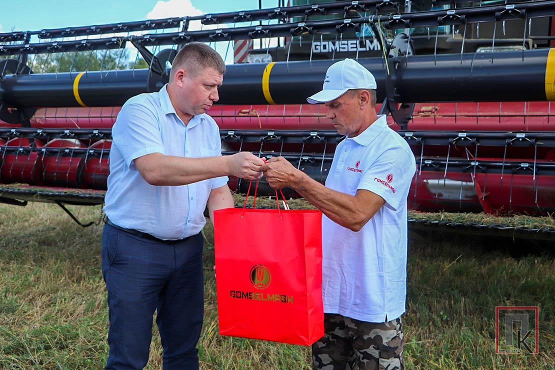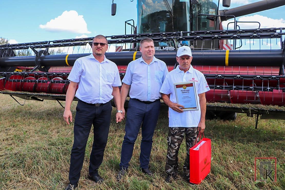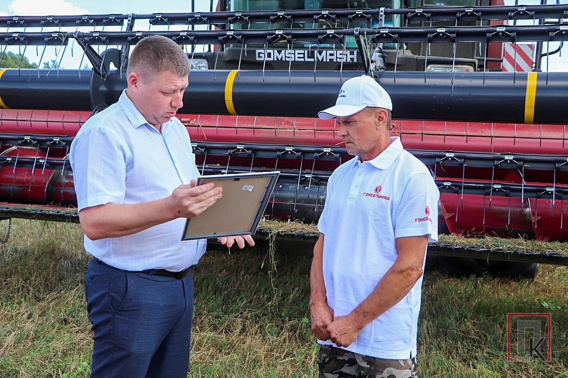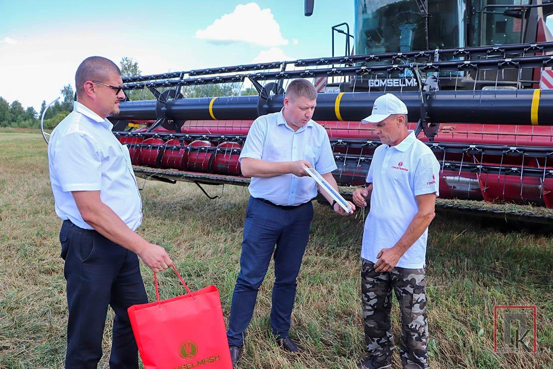 Первого тысячника Витебской области — старшего комбайнера ОАО «Новосёлки-Лучай» Геннадия Анкудовича — поздравили представители ОАО «Гомсельмаш» Денис Поправка и Николай Тимошенко.