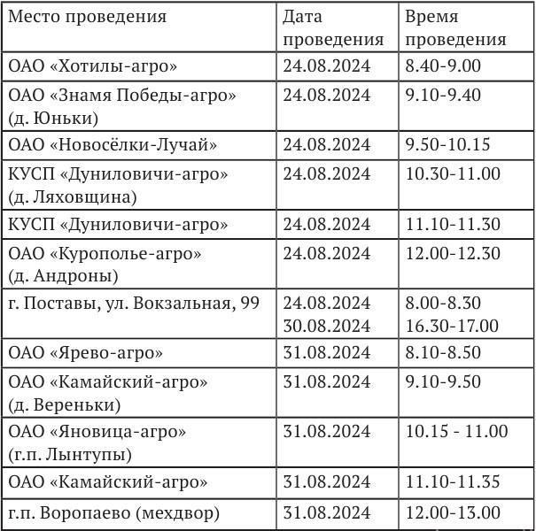 График проведения гостехосмотра