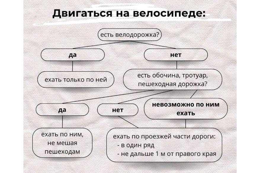 - Когда едете по тротуару без выделенной полосы для велосипедистов, старайтесь ехать прямо, не объезжайте пешеходов зигзагообразно. Ваши действия должны быть для всех предсказуемы.