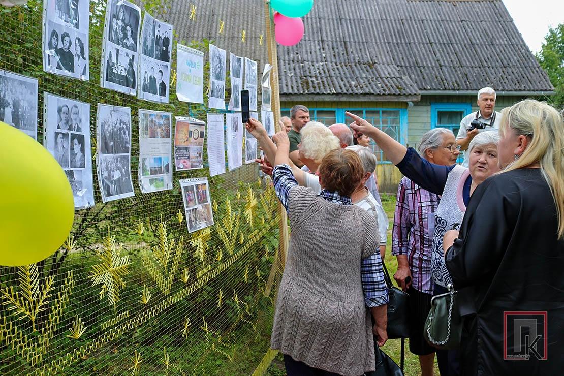 На свята сабралася амаль паўсотні тых, чыё сэрца, нягледзячы на адлегласць, ірвецца ў родную вёсачку. Памаліўшыся каля крыжа, усе спусціліся крыху ніжэй па вуліцы і размясціліся ў засені яблынь насупраць хаты Васілеўскіх. Тут на спецыяльным стэндзе былі размешчаны фотаздымкі вяскоўцаў розных гадоў. Прысутныя з цікавасцю разглядалі іх, знаходзілі сваіх родных і знаёмых, успаміналі адлюстраваныя на фота падзеі.