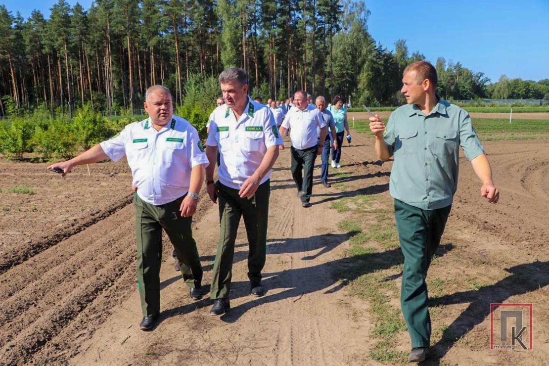 Участники разделились на три группы и посетили Лынтупское лесничество, деревообрабатывающий цех «Смолярня» и питомник. Министр был в составе группы, которая изучала опыт работы в питомнике. Экскурсию провёл его начальник Алексей Родь. На площади почти в 10 гектаров здесь высажено больше 50 видов древесных и кустарниковых растений. Среди них основные лесообразующие породы (ель, сосна), а также редкие — лиственница европейская, орех маньчжурский. С закрытой корневой системой выращивают ель европейскую. В двух теплицах теперь растёт её 266 тысяч штук.