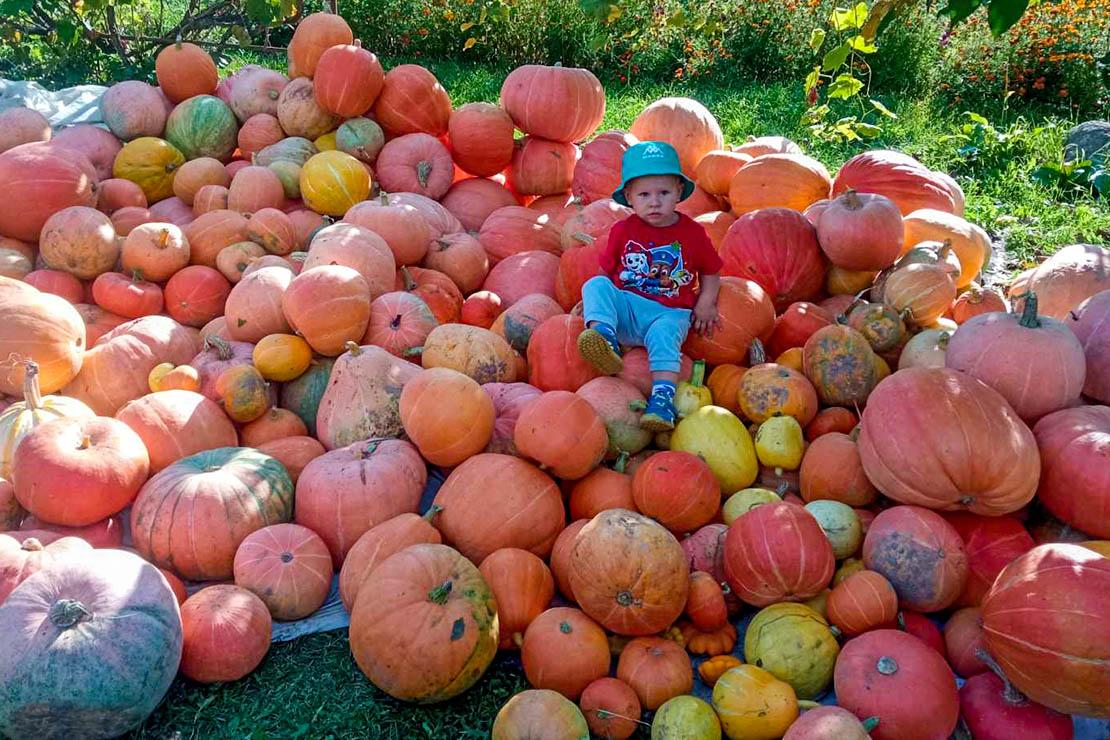 Убіралі гарбузы талакой. А двухгадовы Цімафей забаўляўся з імі, як на атракцыёне з мячамі.