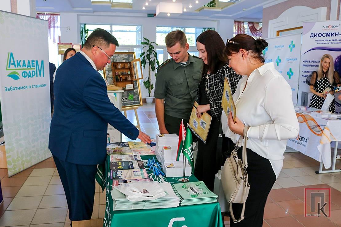 Пасля знаёмства з гісторыяй Пастаў госці перамясціліся ў раённы Дом культуры. У яго фае сваю прадукцыю прадставілі вытворцы лекавых прэпаратаў і вырабаў медыцынскага прызначэння рэспублікі: Барысаўскі завод медыцынскіх прэпаратаў, кампаніі «Лекфарм», «АмантисМед» і «Экзон», навуковае фармацэўтычнае прадпрыемства «Академфарм». Іх прадстаўнікі ахвотна расказвалі ўдзельнікам канферэнцыі пра фармацэўтычныя навінкі, уручалі промапрадукцыю. Паклапацілася пра падарункі калегам і Віцебскае УП «Фармацыя».