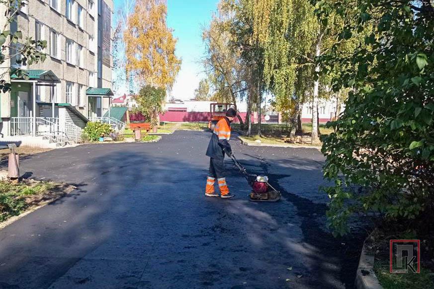 Жителей дома №5 по ул. Юбилейной сегодня радует не только солнечная осенняя погода. Во дворе их дома работники ДЭУ-33 уложили новое асфальтовое покрытие.