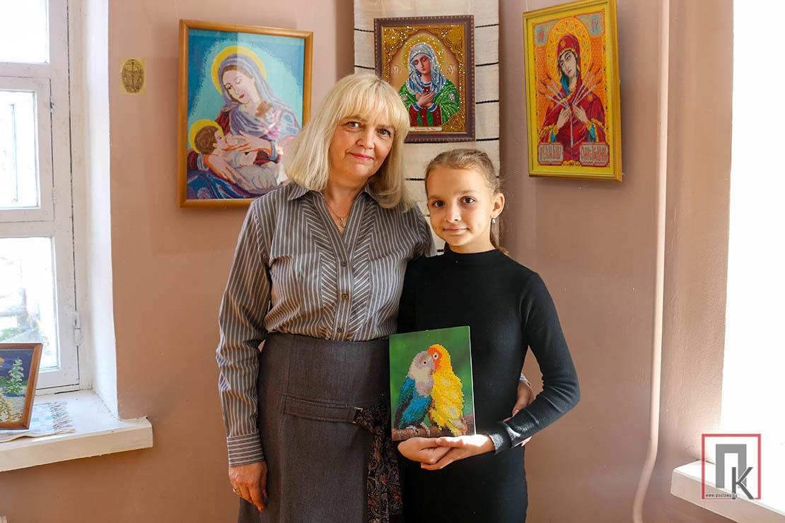Што да Таццяны Іванаўны, то іголку з ніткай яна ўзяла ў рукі, калі была цяжарная другой дачкой, якой зараз 18 гадоў. Спачатку вышывала просценькія карцінкі для падушачак. Затым перайшла да больш складаных карцін, а пазней захапілася алмазнай мазаікай. Па словах майстрыхі, яна асабліва ганарыцца сваімі іконамі, выкананымі ў гэтай тэхніцы і вышытымі крыжыкам. Іх зрабіла ўжо з дзясятак, і, зразумела, усе не змаглі ўвайсці ў выставу. Алмазная мазаіка падабаецца і 10-гадовай Леры, якая, гледзячы на бабулю, таксама пачала тварыць.