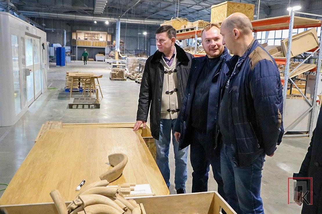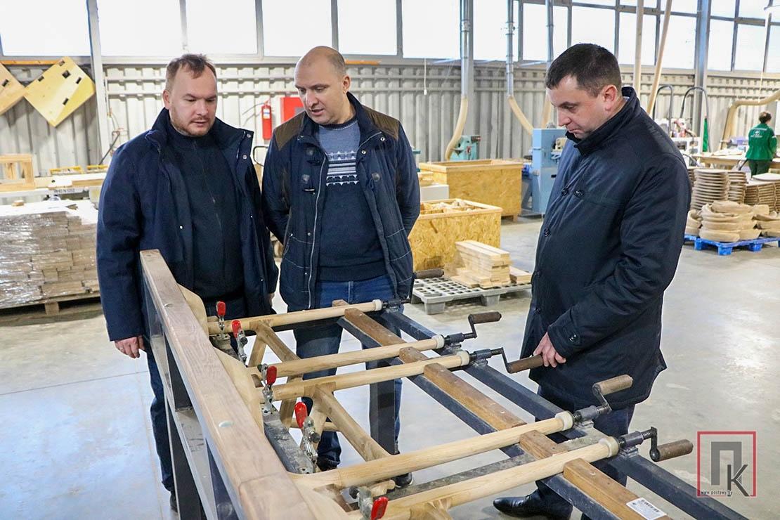 Первым стало производство по изготовлению и сборке стульев ЧПУП «Поставский мебельный центр». Главный технолог Дмитрий Мацкевич ознакомил российскую делегацию с организацией производства и ассортиментом выпускаемой продукции. Посетители увидели процесс изготовления стульев из срощенного массива дуба. По ходу они интересовались техническим оснащением и условиями труда, а также географией сбыта продукции.