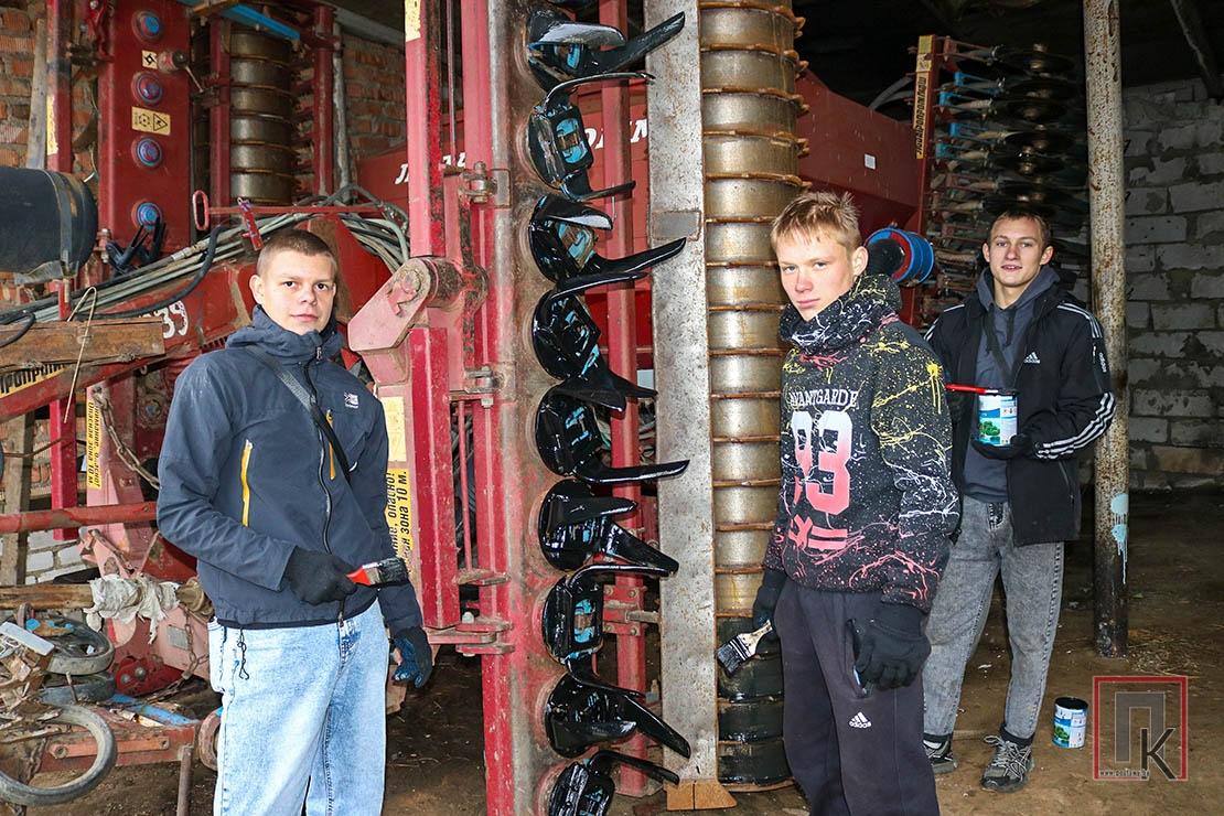 У аўторак трэцякурснікі працавалі ў ААТ «Кураполле-агра». Многіх з іх ведаю, бо яшчэ ў верасні пісала пра іх работу на палях раёна. Зараз кожнаму знайшоўся занятак і ў Кураполлі. Пад кіраўніцтвам майстра вытворчага навучання Аляксандра Даўжука, загадчыка майстэрняў Арцёма Савельева навучэнцы ачышчалі колы сельскагаспадарчых агрэгатаў, фарбавалі сеялкі, дыскі, плугі, культыватары, бялілі колы камбайнаў. Для навучэнцаў гэта добрая магчымасць спазнаць абраную прафесію, а для гаспадаркі — немалая дапамога ў важнай справе.