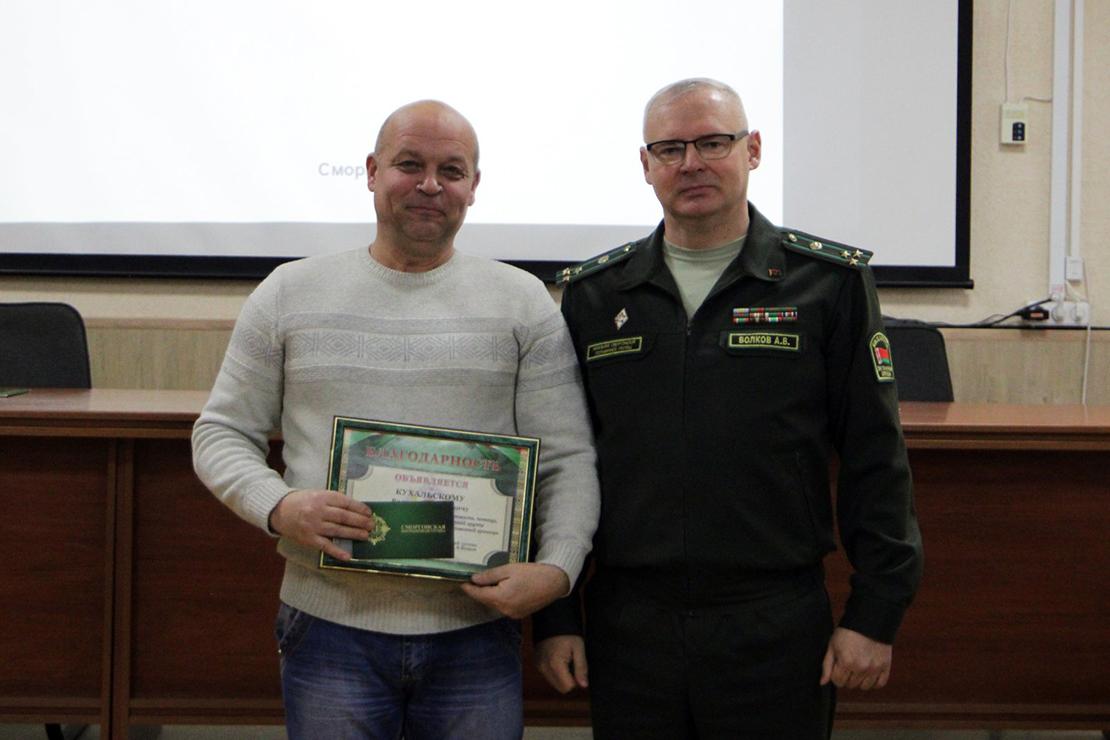 Начальник Сморгонской пограничной группы полковник Андрей Волков подвёл итоги работы добровольных дружин на участке погрангруппы и отметил высокий уровень их взаимодействия с пограничниками по результатам 2024 года.
