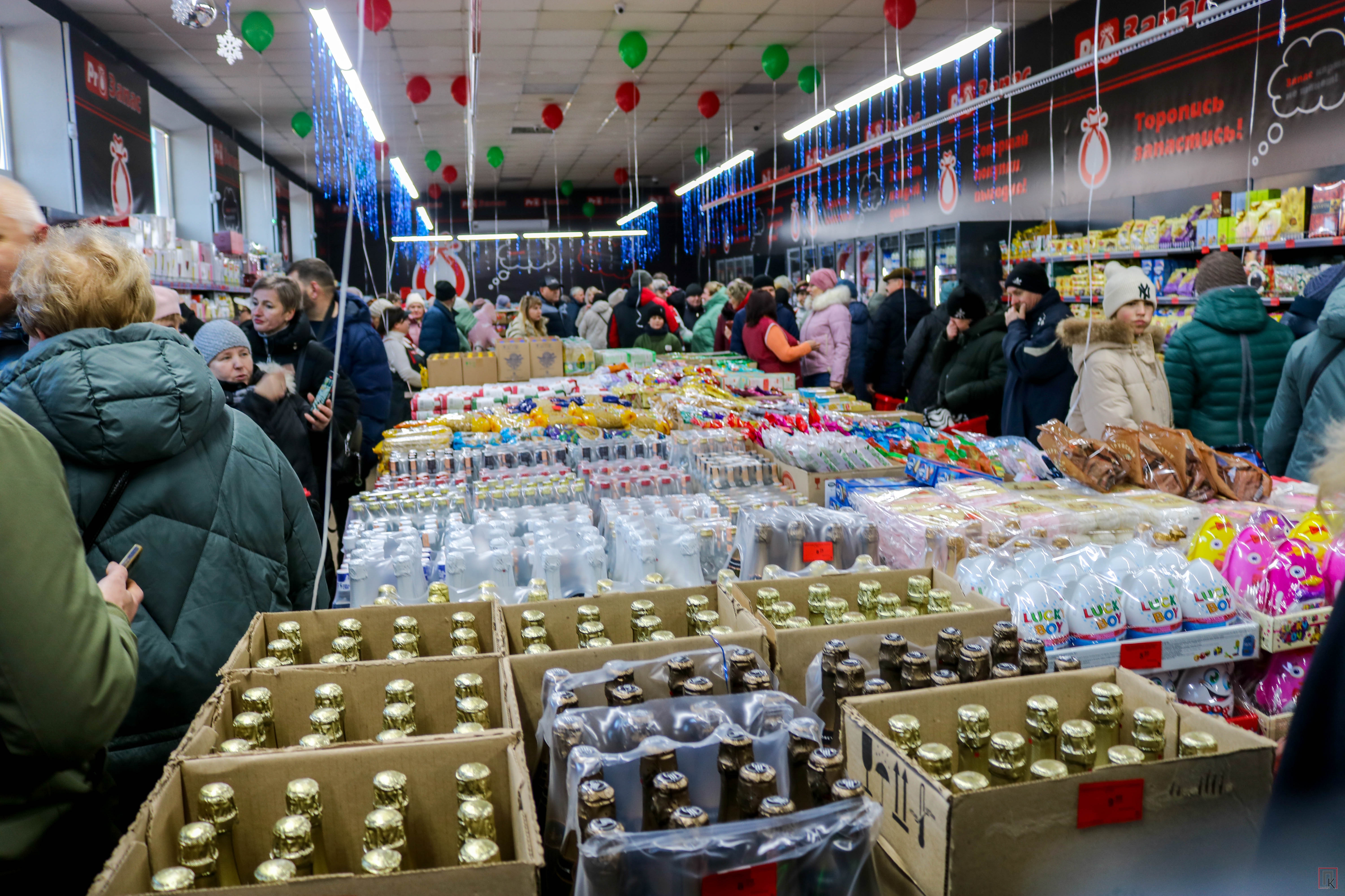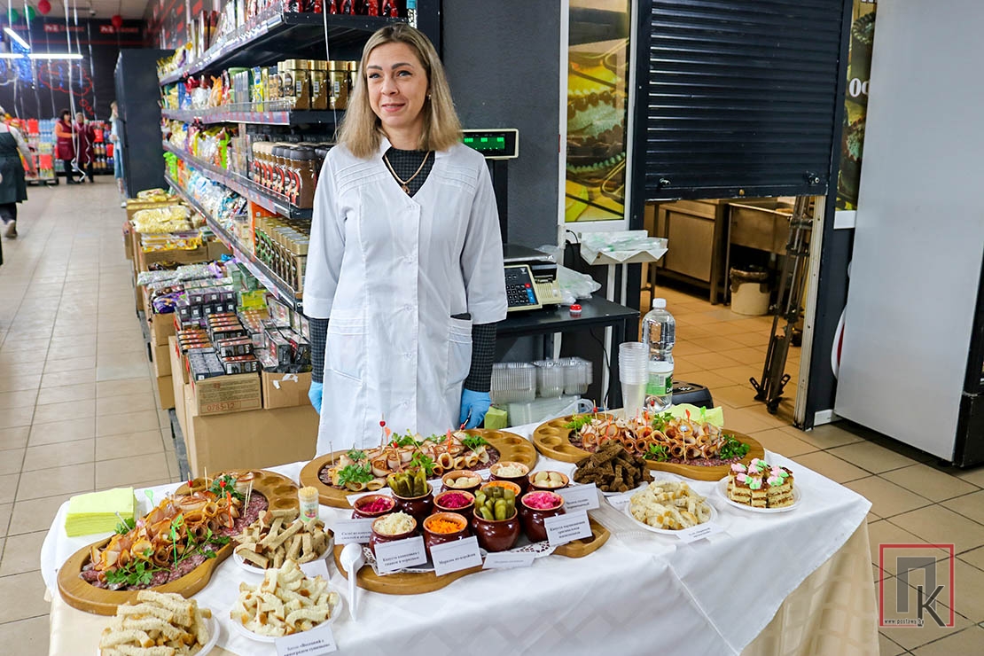 Почётные гости перерезали красную ленту у входа в магазин и пригласили покупателей. Желающих окунуться в праздничную атмосферу и сделать нужные и недорогие покупки нашлось немало. В большой толпе было сложно сориентироваться и всё рассмотреть. По словам заведующей магазином Лилии Мелец, в ассортименте около 5 тысяч наименований товаров. Здесь представлена молочная, колбасная и мясная продукция, кондитерские изделия, бакалея, стиральные порошки, моющие средства. Всё натуральное и качественное. Около 70% товаров отечественного производства.
