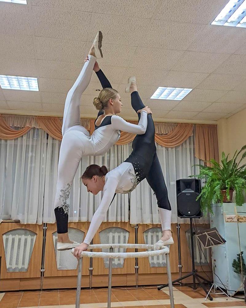 В Поставах, наверно, нет ни одного человека, который не видел бы выступления образцовой цирковой студии «Каскад» и не восхищался бы талантом его солисток Яны Зуевой и Марии Тананы. У участников гостиной была возможность познакомиться с ними поближе. Яна и Мария рассказали о своём пути в цирковую студию, занятиях в ней, любимых концертных номерах.