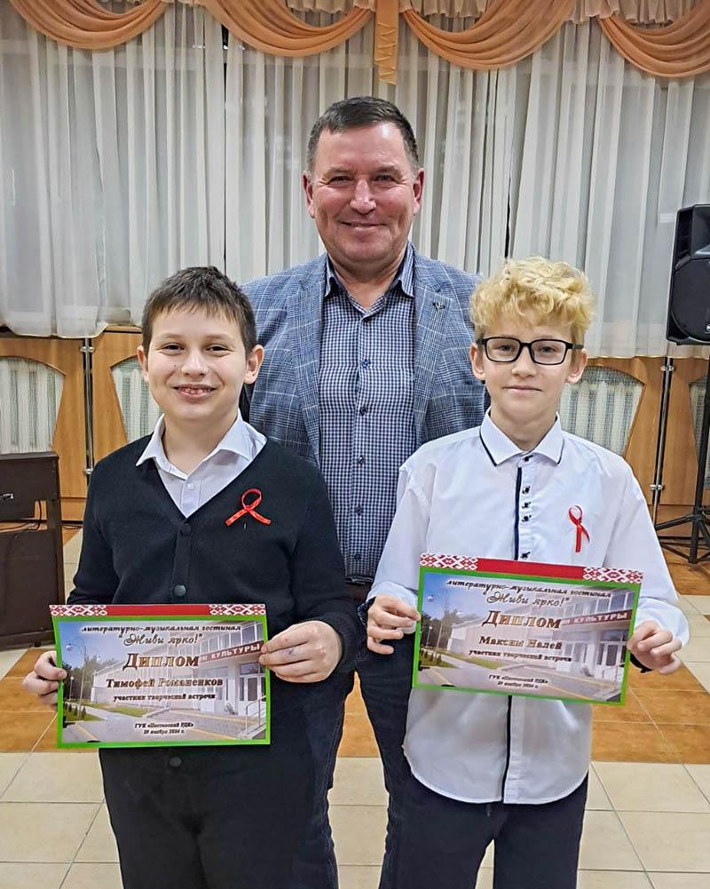 Учащиеся Поставской детской школы искусств им. А. Тизенгауза Вера Осененко, Тимофей Романенков, Снежана Бучель, Максим Налей, Яна Кристутис, Валерия Шакола выбрали музыку и активный образ жизни. Они играют на трубе, баяне, флейте, фортепиано. Карина Коршунова, Анастасия Петкевич, Диана Янукович (СШ №2 им. Н.М. Осененко) творчеством — игрой на гитаре — занимаются в районной центре детей и молодёжи. У учащегося Поставского государственного колледжа Ильи Гапоника любимый инструмент также гитара, у Дмитрия Четовича из СШ №3 — саксофон. На встрече ребята рассказывали о себе, играли на музыкальных инструментах, пели, угадывали мелодии, играли в интерактивные игры.
