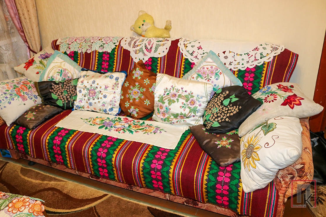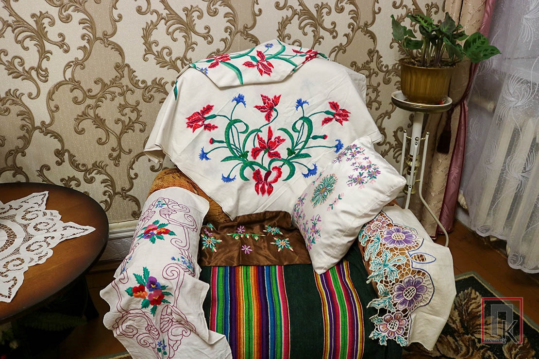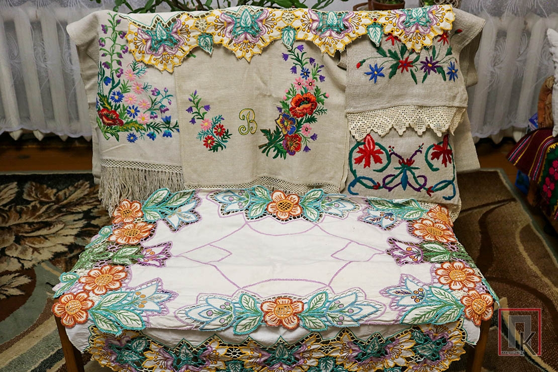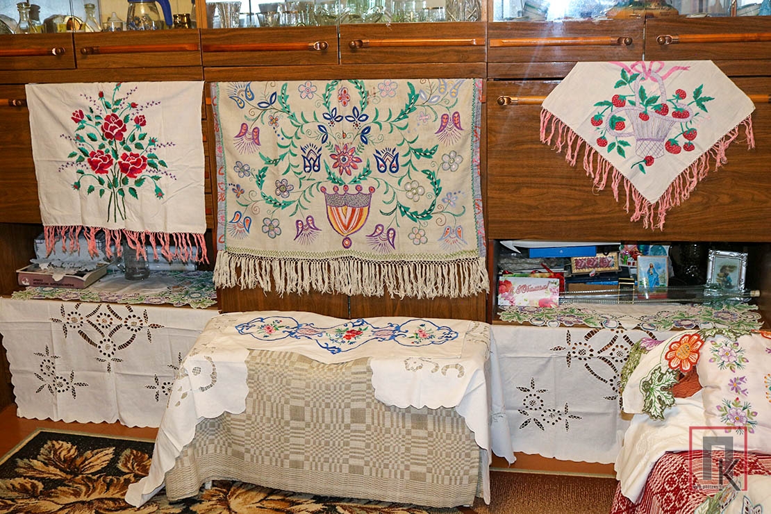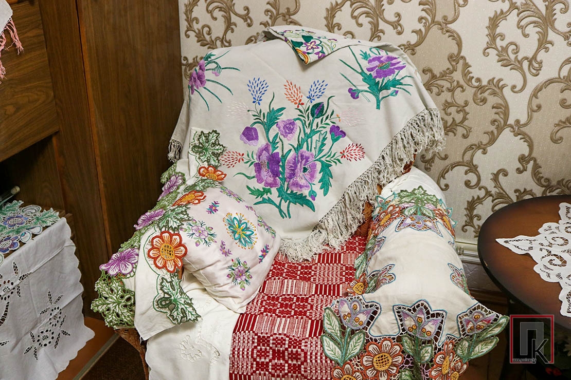 Заходжу ў дом да Марыі і Івана Баторы — і нібы на выставу народнай творчасці трапляю: саматканыя дываны, вышыўкі, абрусы, ручнікі, сурвэткі, падушачкі…