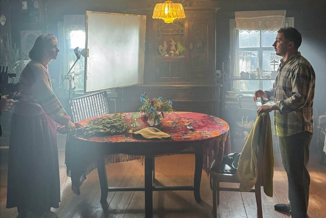 — Хлопцы патэлефанавалі нам яшчэ ўвосень, — расказвала мне гаспадыня сядзібы. — З-за шэрага абставін здымкі пераносіліся некалькі разоў і ў выніку адбыліся 22—24 снежня. Рэжысёрская група прыехала крыху раней, каб пазнаёміцца з лакацыямі. Работу пачыналалі з самага ранку, у 5-6 гадзін. Магу сказаць, што гэта прыемныя і высокапрафесійныя людзі, якія выконваюць сваю працу з вялікай адказнасцю. Сапраўдным цудам у дні здымак стала тое, што выпаў снег, які надаў наваколлю чараўніцтва.