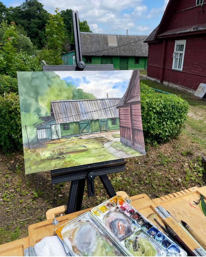 «На пленэр я приехала благодаря Ассоциации художников-пленэристов и правительству города Поставы. Нас встретили как своих. С первых минут мы ощутили радушие принимающей стороны и местных жителей. После встречи с главой района в райисполкоме мы отправились на пленэр, но погода внесла свои коррективы…»