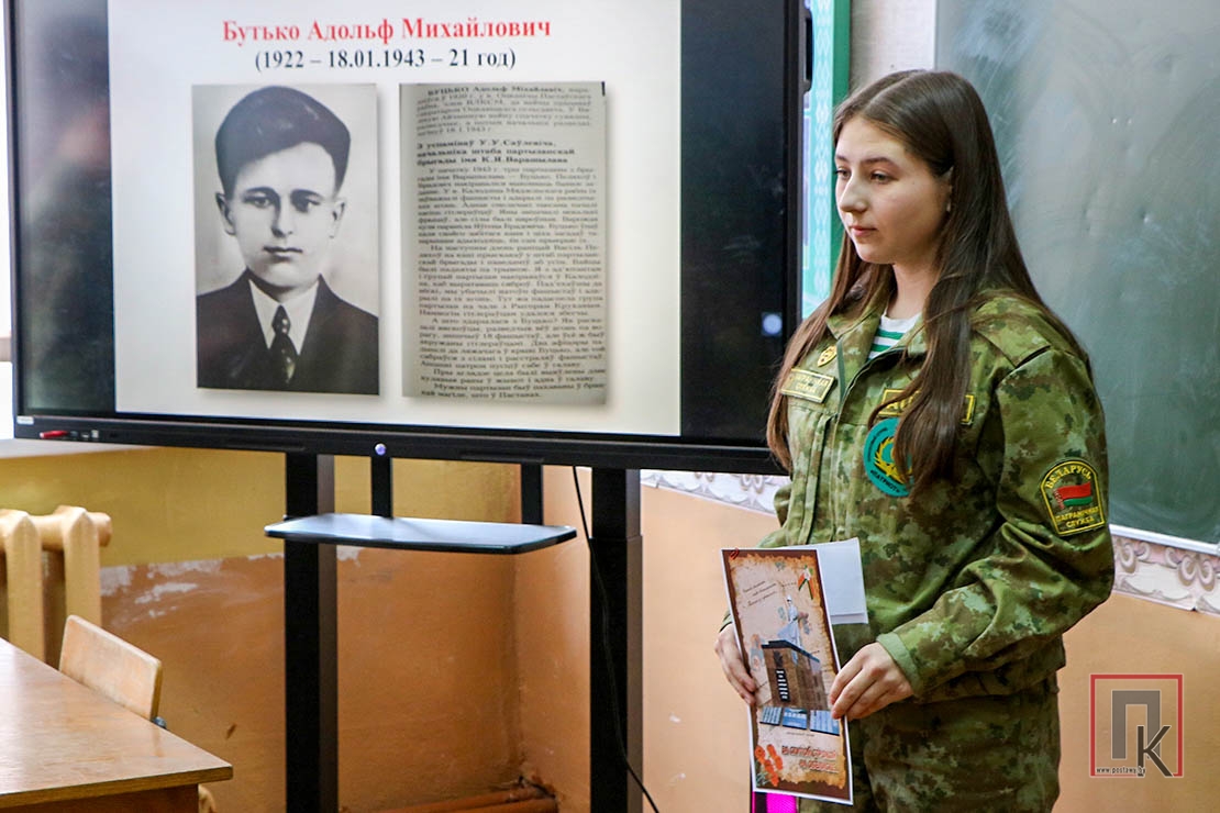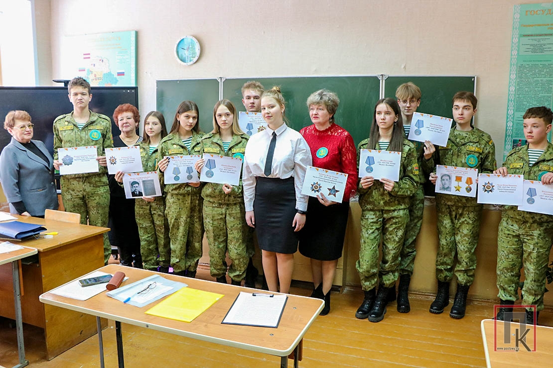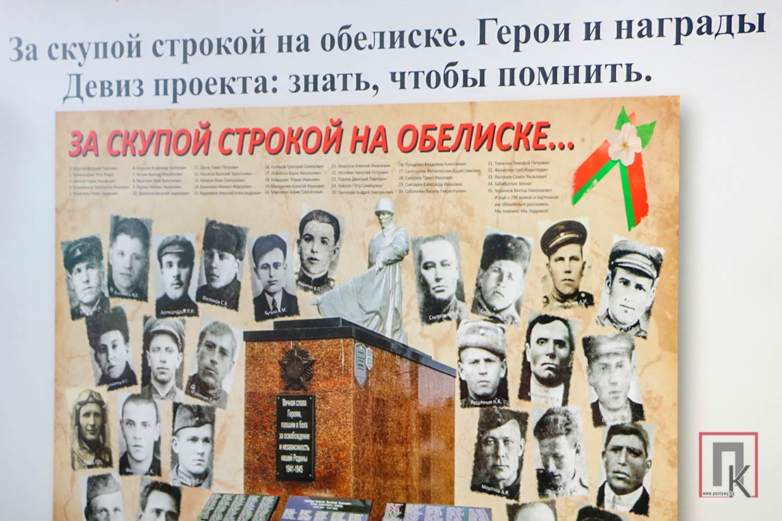Во время урока памяти были презентованы уже установленные поисковым отрядом данные. Руководитель по военно-патриотическому воспитанию Сергей Машков и школьный библиотекарь Елена Степанова, учащиеся-поисковики рассказали о боевом пути и ратных подвигах Героя Советского Союза рядового Василия Киричука, партизана Адольфа Бутько, младшего лейтенанта Бориса Кухарского, младшего сержанта Фёдора Орлова, рядовых Владимира Абрамова, Дмитрия Макарова, Василия Рожкова, Акжи Интабаева. Председатель районного совета ветеранов Анна Литвинович и секретарь этой организации Галина Лапушинская ознакомили с биографией и наградами рядового Фёдора Бабуркина. Это были молодые парни из разных уголков бывшего Советского Союза, но объединило их одно: они погибли, освобождая поставскую землю.