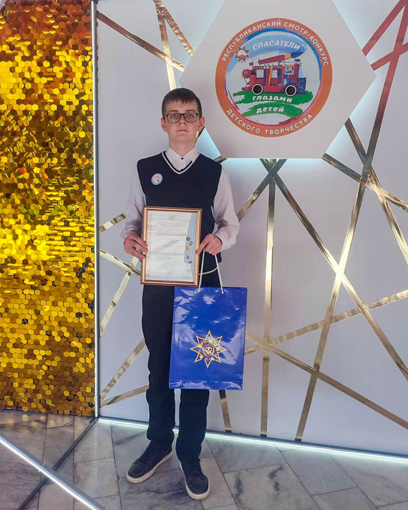 В минувшую пятницу в Минском государственном дворце детей и молодёжи состоялась церемония награждения победителей XXVII Республиканского смотра-конкурса детского творчества «Спасатели глазами детей». На мероприятие собрались лучшие юные таланты со всей страны. Достойное место среди лауреатов конкурса занял и наш земляк Роман Максимов.