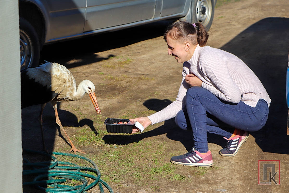 — Аистёнок у нас появился в мае прошлого года, — рассказывала Кристина Ловец. — Мой муж периодически ездит помогать жительнице деревни Филиповцы Гонорате Козловской. — Знает её давно, поскольку сам оттуда родом. Она и обнаружила птенца, который то ли выпал из гнезда, то ли был выброшен. Понимая, что в глуши его выкормить будет сложно, муж предложил забрать малыша в город.