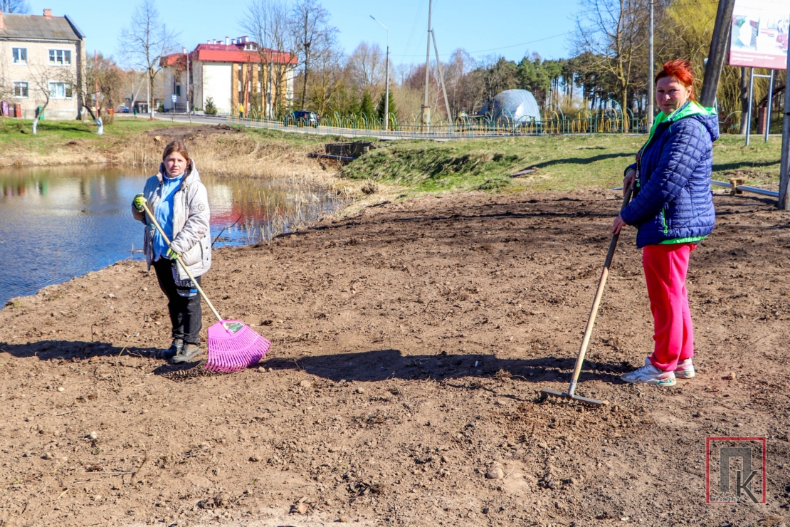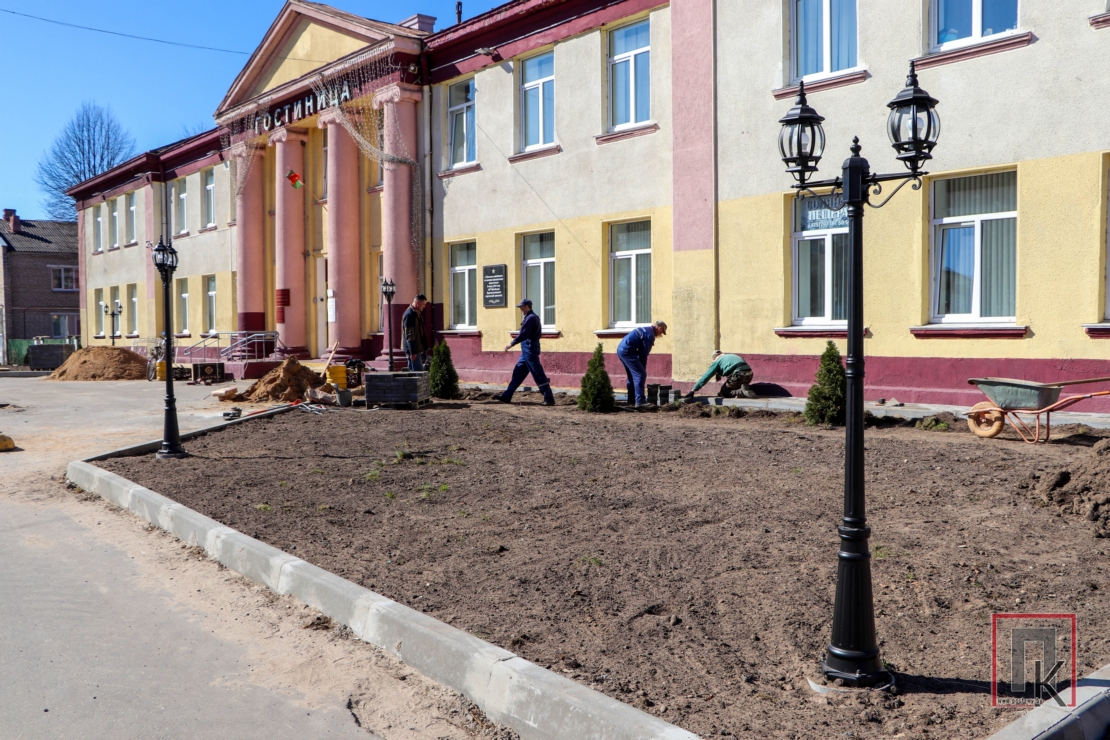 Цветоводы УП ЖКХ Поставского района сегодня посеяли газон вдоль подъездной дороги к ФОКу.