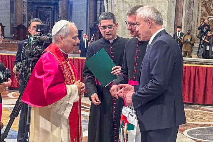 Ігар Сергяенка падчас урачыстай цырымоніі сустрэўся з Папам, выказаў упэўненасць, што душпастырскае служэнне Святога Айца будзе дабром для чалавецтва на Зямлі, і перадаў Папу віншаванне ад Прэзідэнта Рэспублікі Беларусь Аляксандра Лукашэнкі і падарунак — абраз Божай Маці Жыровіцкай.