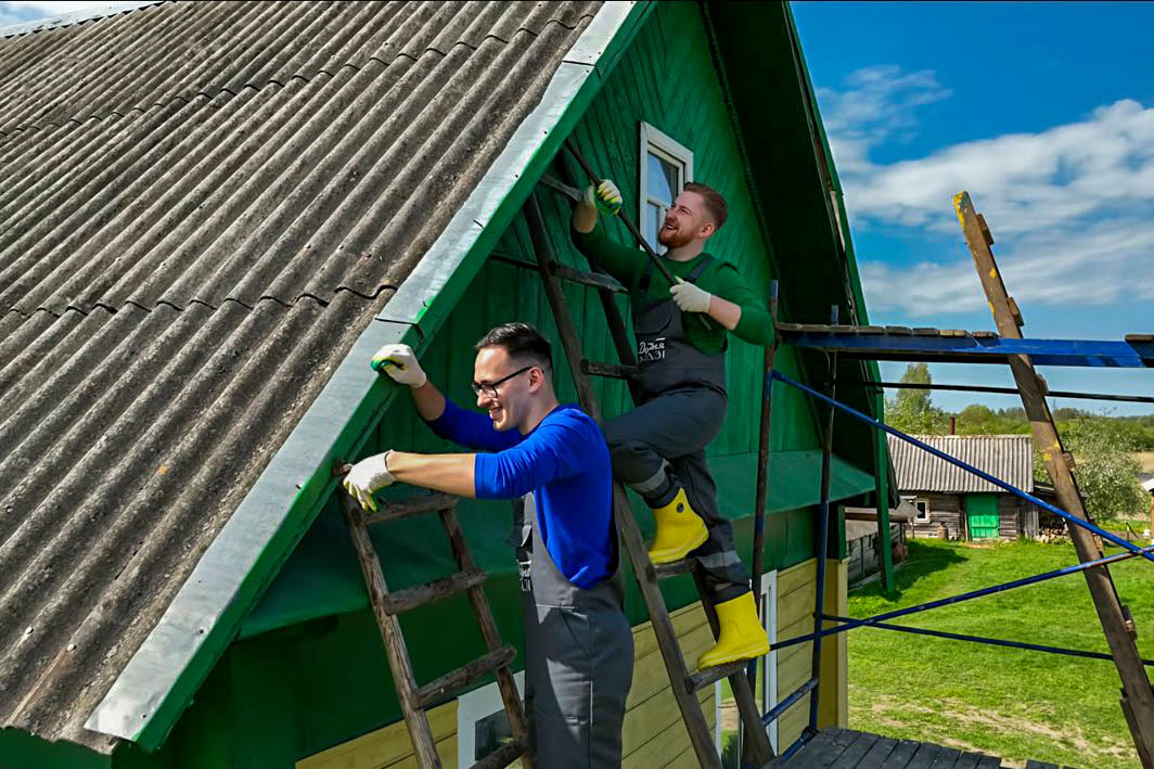 Першымі, па словах суразмоўцы, прыбылі два будаўнікі, якія па дамоўленасці з прадзюсарам узялі на сябе асноўную работу па рамонце дома — падрамантавалі падмурак і канёк на даху. (Не артыстам жа гэта выконваць!) Следам даставілі неабходныя будматэрыялы і абсталяванне, уключаючы будаўнічыя рыштаванні. Апоўдні прыбыла ўся здымачная каманда разам з прадзюсарам і чатырма ўдзельнікамі гурта «Добрыя людзі».