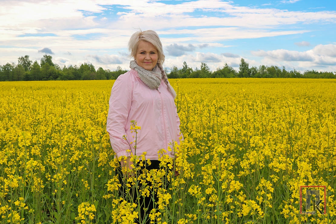 З Аксанай Альфрэдаўнай размаўлялі на рапсавым полі непадалёк ад Шкіралёў. Жоўтыя раслінкі золатам пераліваліся на сонцы. Акрамя чароўнай прыгажосці, яны яшчэ маюць і прыемны саладкавата-мядовы водар.