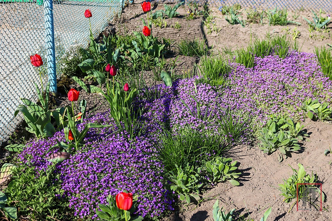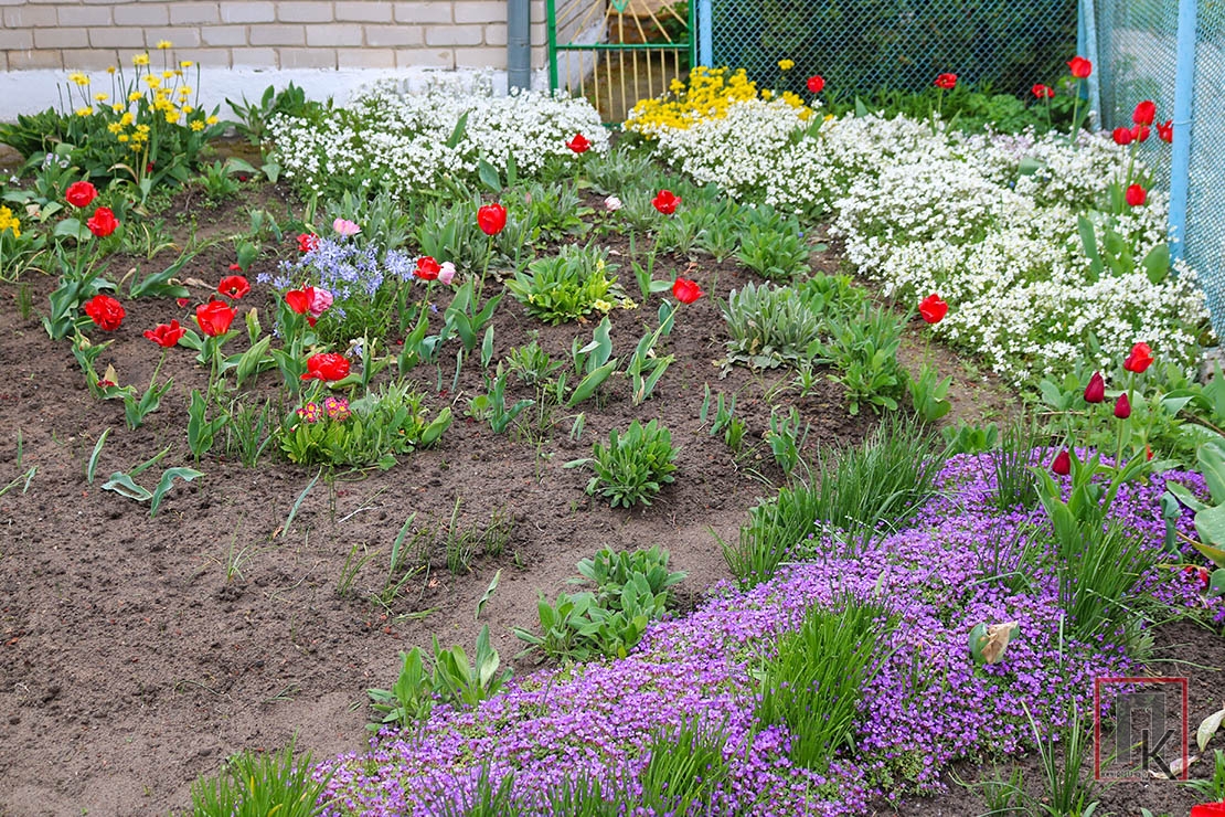 З ранняй вясны да позняй восені яркім цвіценнем прыцягваюць да сябе ўвагу прахожых агародчыкі перад двума суседнімі дамамі па вуліцы Ленінскай — №39 і №45. У адным жыве Святлана Мядзельская, у другім — Марыя Касцень. Абедзве пенсійнага ўзросту, аб’ядноўвае іх і захапленне кветкаводствам і агародніцтвам. Пра раскошныя хрызантэмы Святланы Мядзельскай я пісала мінулай восенню, быў у газеце і іх здымак. Сёння яе агародчык квітнее цюльпанамі і браткамі.