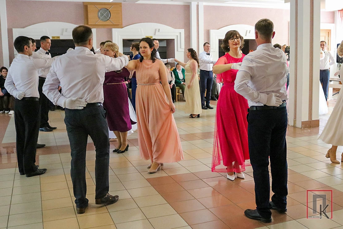 Пасля святой Імшы ўсе адправіліся ў раённы Дом культуры. Яго фае ўпрыгожвалі элегантныя дамы ў яркіх сукенках, галантныя кавалеры ў белых пальчатках. Вядучыя балю Сяргей і Святлана Івановы, Мікалай і Святлана Ожэлі (яны ж арганізатары) прывіталі ганаровых гасцей, удзельнікаў, гледачоў. І загучаў паланэз. Першая пара грацыёзна і велічна задала тон астатнім.