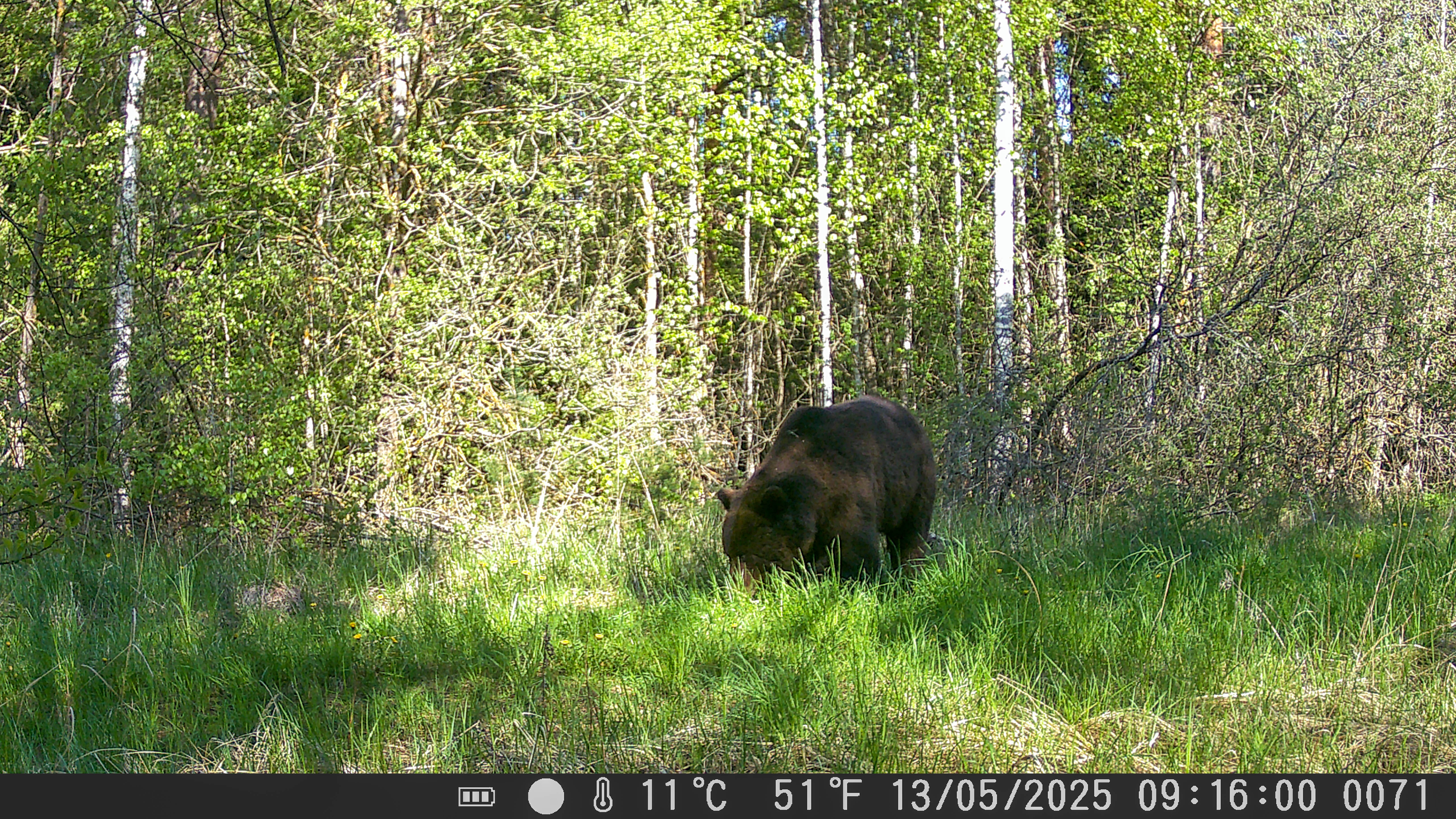 Асабіста мне сустрэцца з мядзведзем, як кажуць, нос у нос давялося некалькі гадоў таму: звер высунуўся з гушчара, але, убачыўшы мяне, падаўся назад. Летась падчас загоннага палявання на лася адзін з паляўнічых узняў мядзведзя з ляжанкі. На шчасце, звер і чалавек разышліся ў розныя бакі… А мядзведжыя сляды я бачыў не раз.