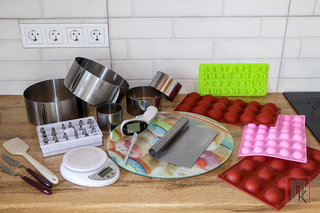 Вскоре она обзавелась и другими необходимыми инструментами: кулинарным шпателем, силиконовыми формами для декора, поворотным столом и другими принадлежностями.