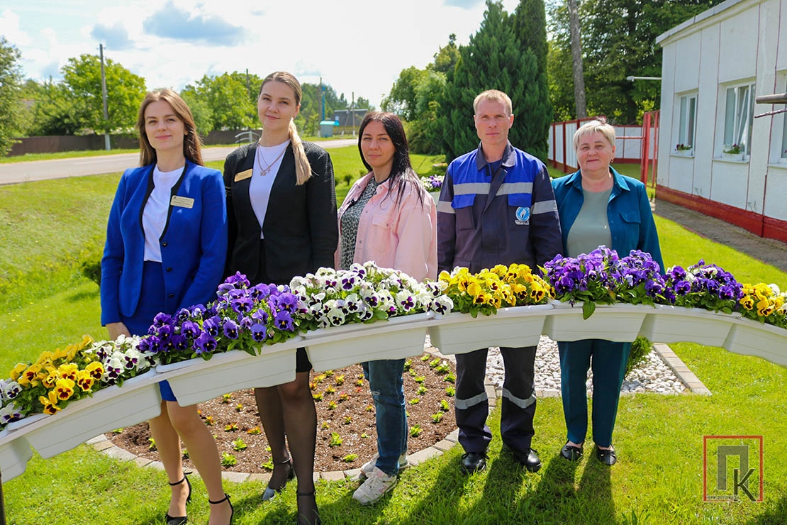В нынешнем появились три арки. В них высадили разноцветную виолу. Предприятие приобрело рассаду в одном из фермерских хозяйств Логойского района. Цветы будут радовать работников предприятия, да и всех остальных. В роскошных кашпо красуется петуния. Эти цветы выращивают в собственной теплице. Уже высажено 300 штук. А ранней весной клумбы утопали в тюльпанах, которых было высажено 800 луковиц.