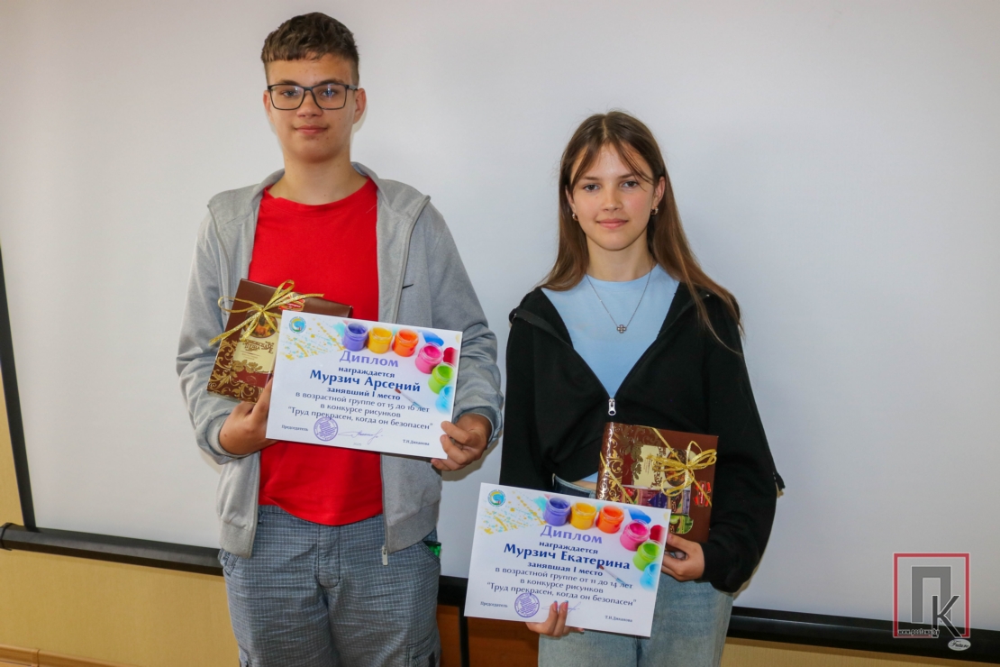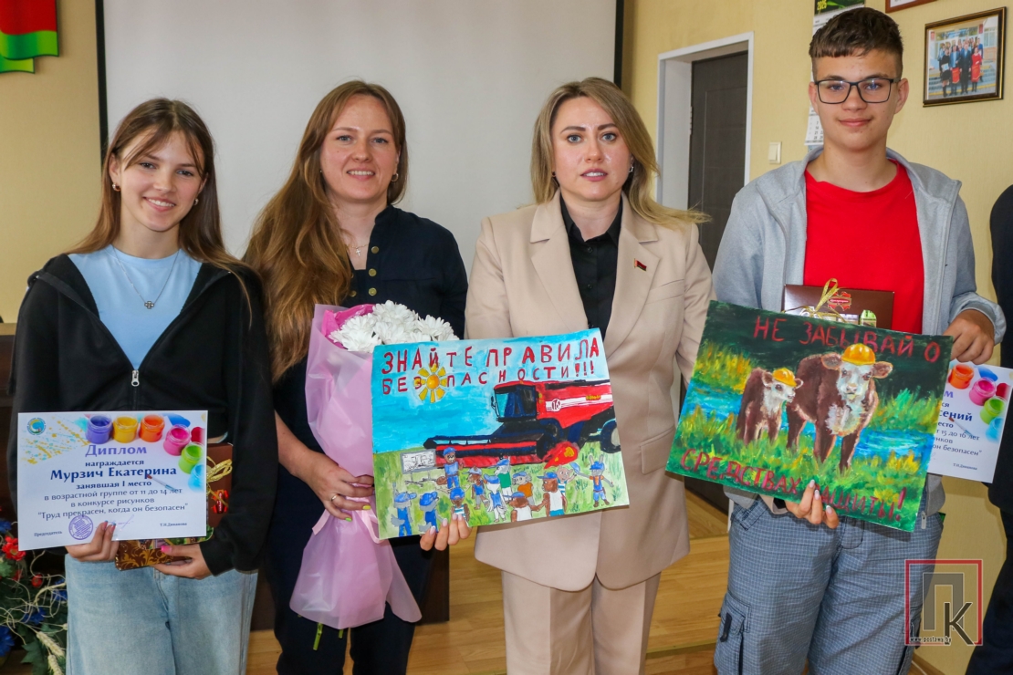Неблагоприятные условия труда приводят к высокому уровню производственного травматизма и профессиональных заболеваний, что, в свою очередь, снижает общую производительность труда. Это понимают даже дети. Доказательством тому стал конкурс детского рисунка «Труд прекрасен, когда он безопасен», который проводила областная профсоюзная организация работников АПК. Участвовали в конкурсе и дети членов профсоюза АПК. Победителями признаны Арсений и Екатерина Мурзичи — дети председателя профсоюзной первички Поставской райветстанции Ольги Мурзич. Татьяна Диканова вручила им благодарности и сладкие подарки. Благодарности получили и социальные партнёры профсоюза.