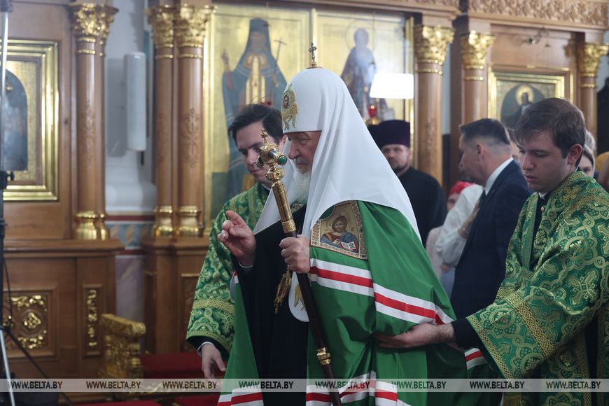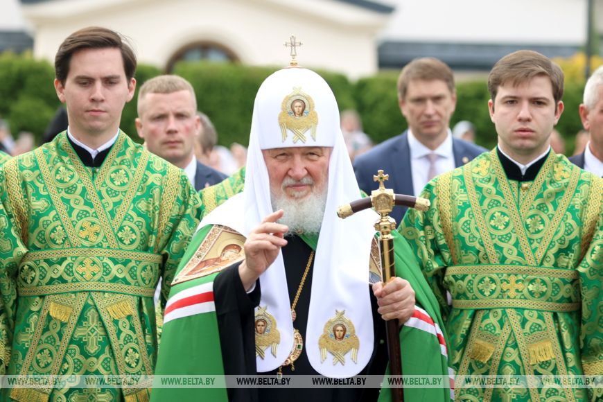 В Полоцке в Спасо-Евфросиниевском женском монастыре глава Русской православной церкви (РПЦ) Патриарх Московский и всея Руси Кирилл возглавляет Божественную литургию.