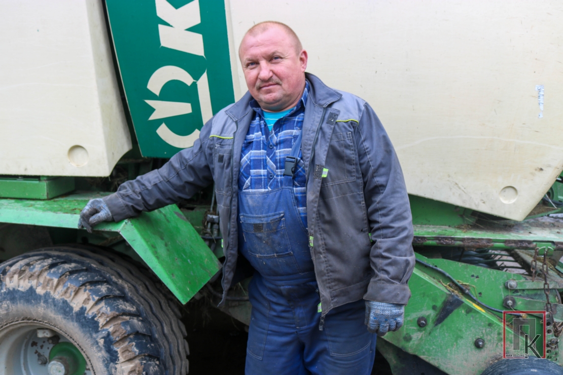 — У гэтай тэхналогіі самае важнае — своечасова скасіць травы, каб яны не былі грубымі, не пашкоджвалі плёнку, — расказваў Андрэй Волк. — Трэба захоўваць шчыльнасць і герметычнасць прасавання. У гэтым ужо маю вопыт. Прэс-упакоўшчык замацавалі за мной 14 гадоў таму. Столькі часу і рулоню правяленую зялёную масу. Таму, якім кіруе Андрэй Малец, чацвёрты сезон. Дажджы сёлета не даюць працаваць у поўную сілу. Але сянаж у стрэйч-плёнку можна нарыхтоўваць і пры больш высокай вільготнасці.
