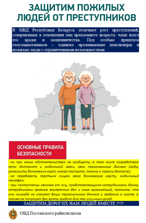 Отдел охраны правопорядка и профилактики Поставского РОВД информирует Вас о проведении на территории района дополнительного мероприятия по профилактике преступлений в отношении престарелых граждан.