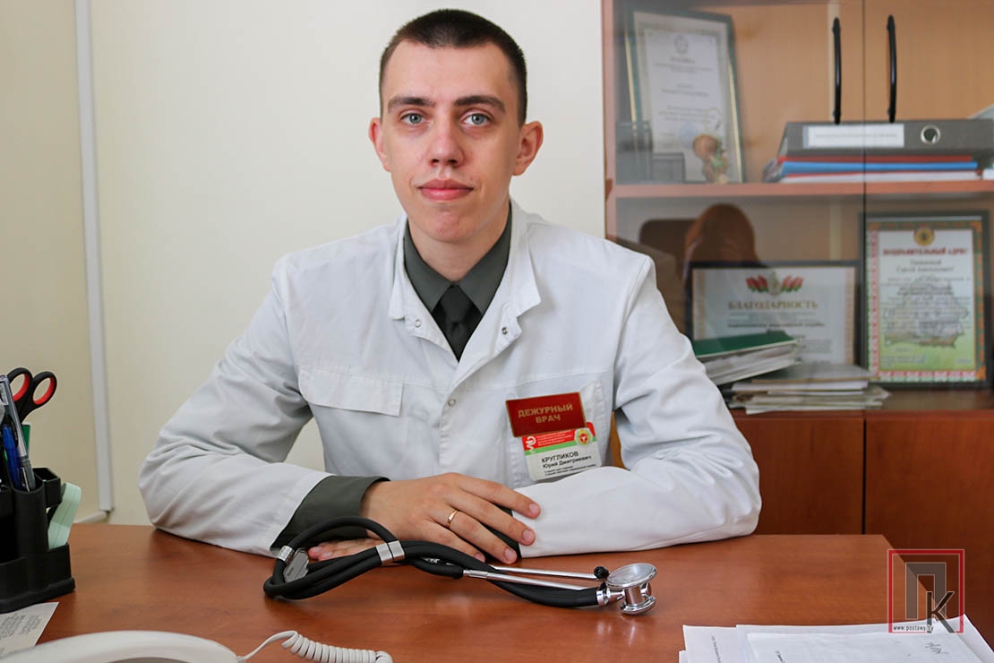 Новым месцам работы малады спецыяліст задаволены. Казаў, што ў калектыве шпіталя прынялі цёпла, у любы момант можа звярнуцца па параду, растлумачэнне або дапамогу да старэйшых калег, якія маюць большы вопыт работы. Перавага і ў тым, што тут меншая нагрузка, чым была ў бальніцы ў Горках. Акрамя прыёму і лячэння пацыентаў, даводзіцца выязджаць у камісарыяты краіны на адбор кандыдатур на пагранічную службу. А гэта вельмі адказная працэдура. Пагранічнікі павінны быць здаровыя, моцныя фізічна, устойлівыя маральна. Суправаджаў пацыентаў, якіх з пастаўскага шпіталя накіроўвалі на кансультацыі ў 432-і мінскі, і трэба было дакладна абгрунтаваць неабходнасць такіх кансультацый.