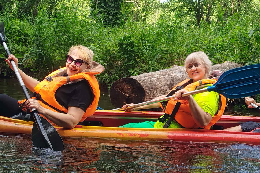 — Стартовали бодро, но скоро поняли, что будет непросто, — делилась впечатлениями председатель первички Людмила Четович. — Из-за дождя накануне вода в реке сильно поднялась. Природа в свою очередь создала на пути серьёзные препятствия: поваленные деревья, коряги и ветки. Чтобы их обойти, приходилось либо аккуратно протискиваться под затопленными стволами, ложась на каяки, либо перелазить через них и внизу пропускать каяк. Если бы не дождь, маршрут был бы проще. Но это испытание позволило нам почувствовать атмосферу настоящего водного приключения.